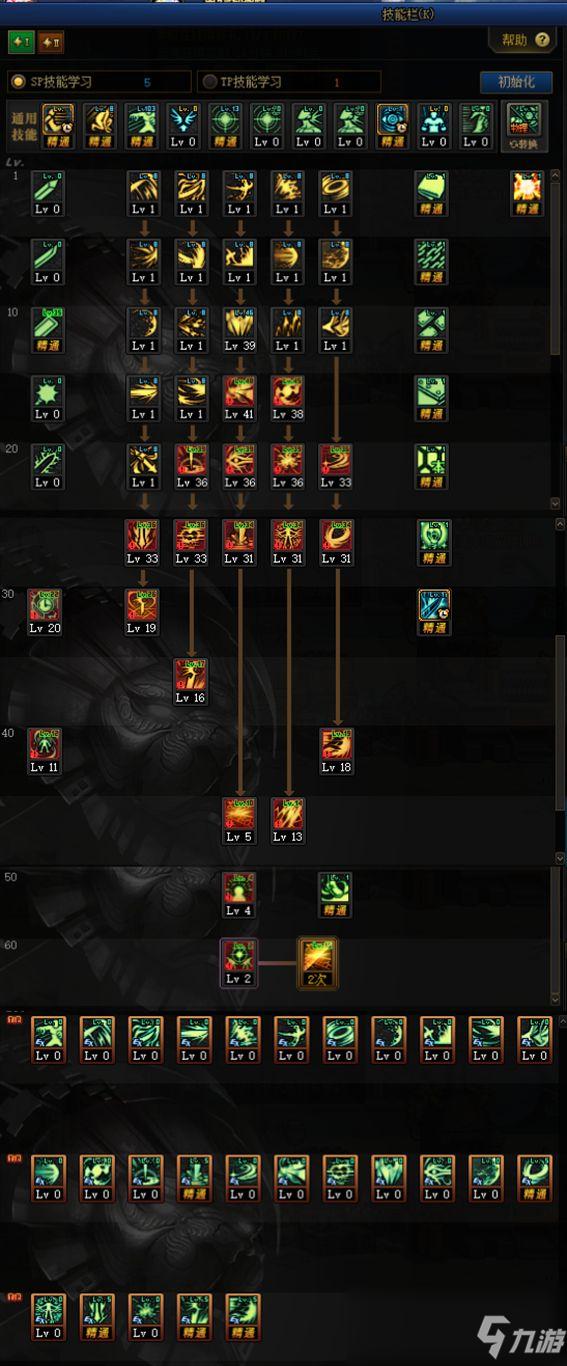 这里舍弃了钱充爆炸,伤害低于墓碑,CD也长,打一个前冲可以放两个墓碑,所以舍弃了。TP点一级鬼闪出不用僵直效果,点一级怒气出增加攻击次数的效果,我不换装抓头所以剩余的点加到了猛龙和基础精通补刀上,换装的可以点抓头TP。