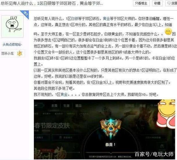 电一艾欧尼亚是被玩家们公认的游戏平均水平更高的大区,毕竟是电信一区啊!老大哥一样的存在。这个大区有着很多职业选手的存在,例如“pdd”,“uzi”等大神,还有很多路人王,以及高水平的游戏主播!可以说这个区的上分难度是巨大的!上到铂金以上就能碰到各种神仙操作了!上分难如上青天!